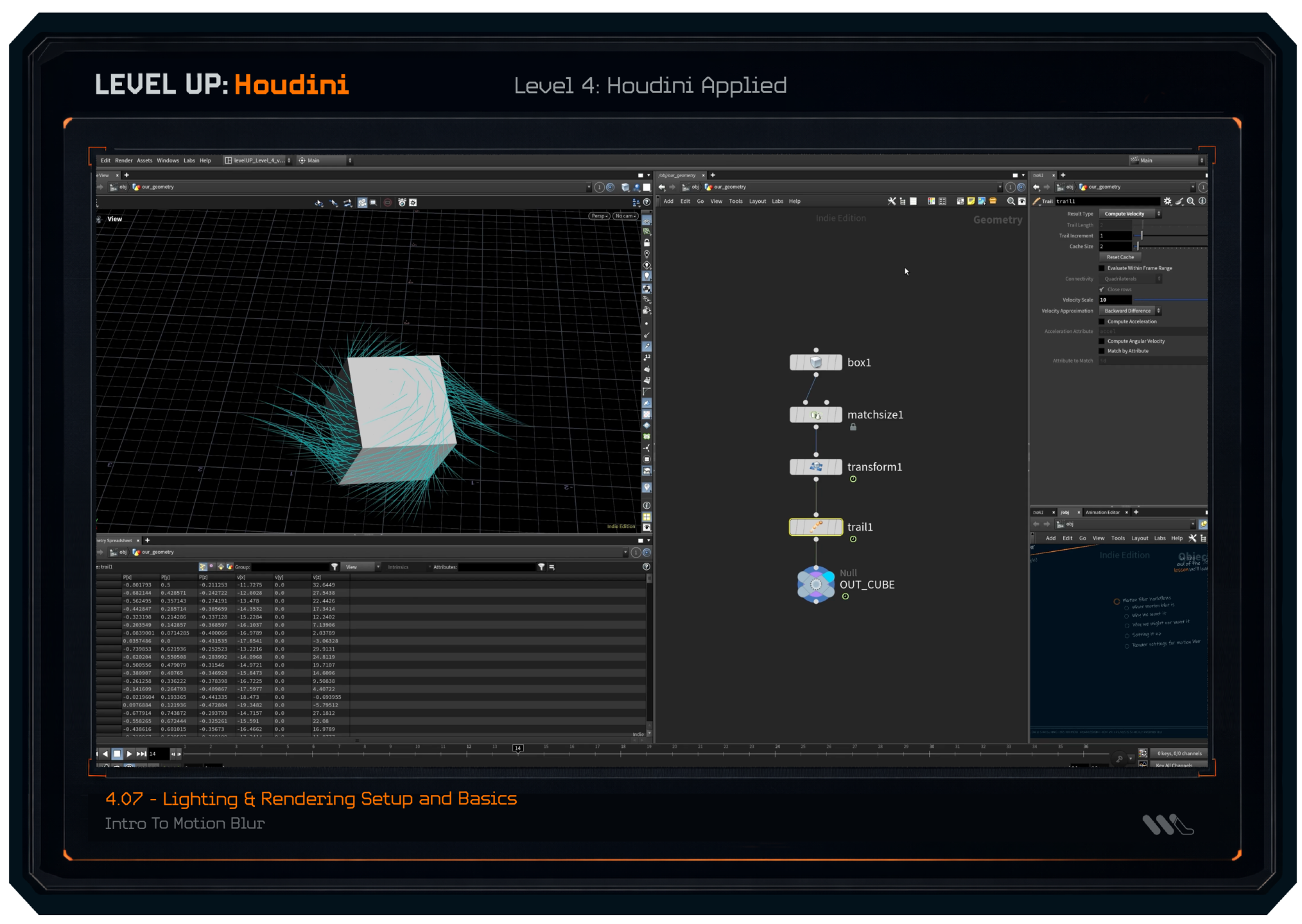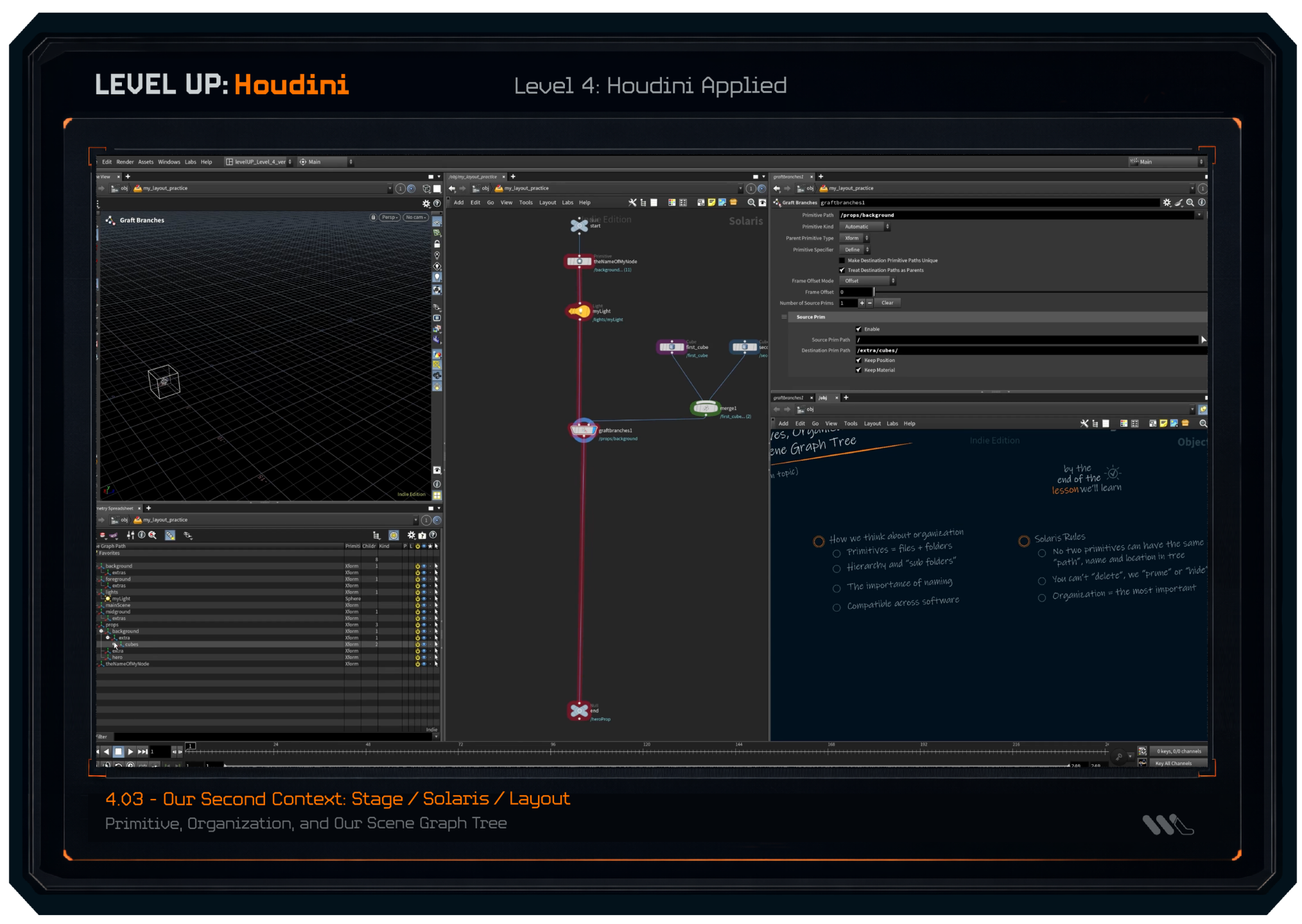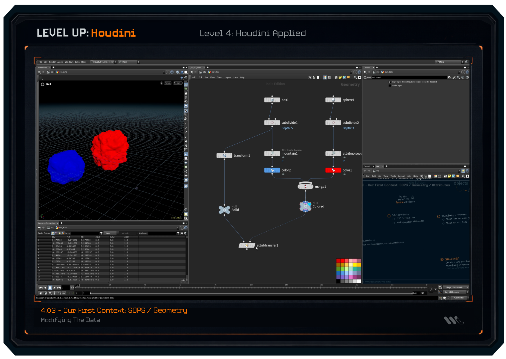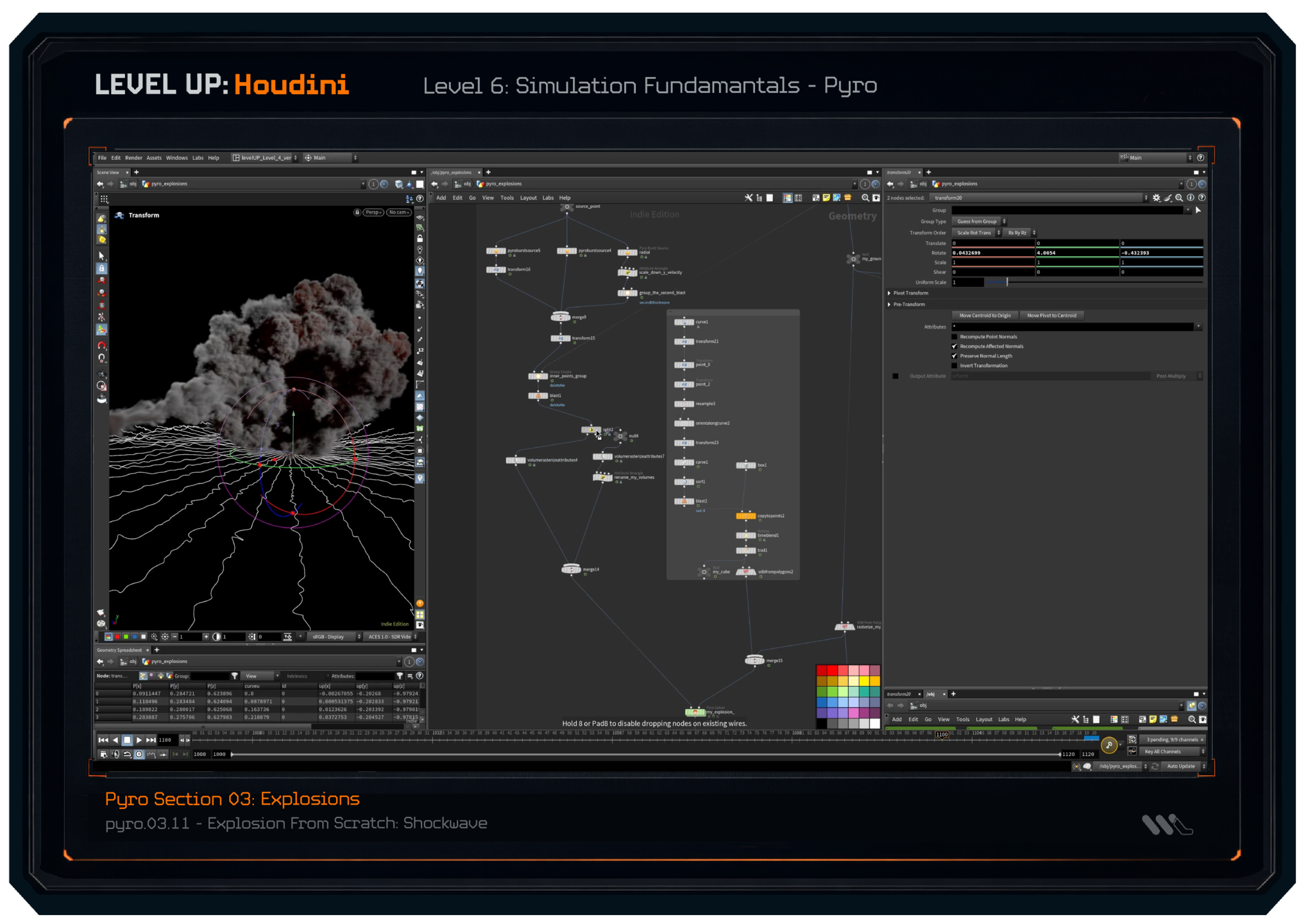 - LEVEL UP: Houdini isn't a traditional workshop. Instead of 12 weeks of endless screen recorded tutorials teaching you how to complete a single shot. We learn the foundational skills that will empower you to design your own shots.