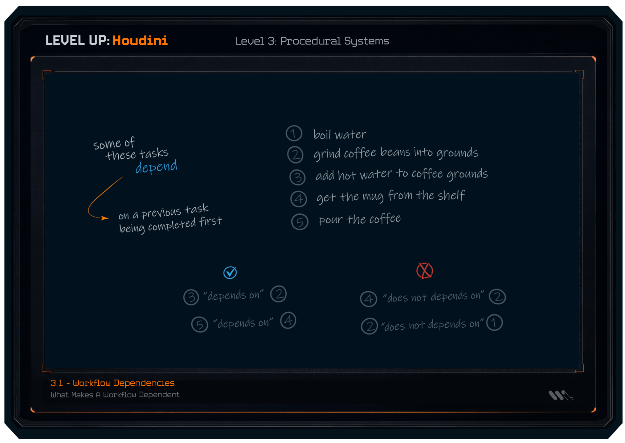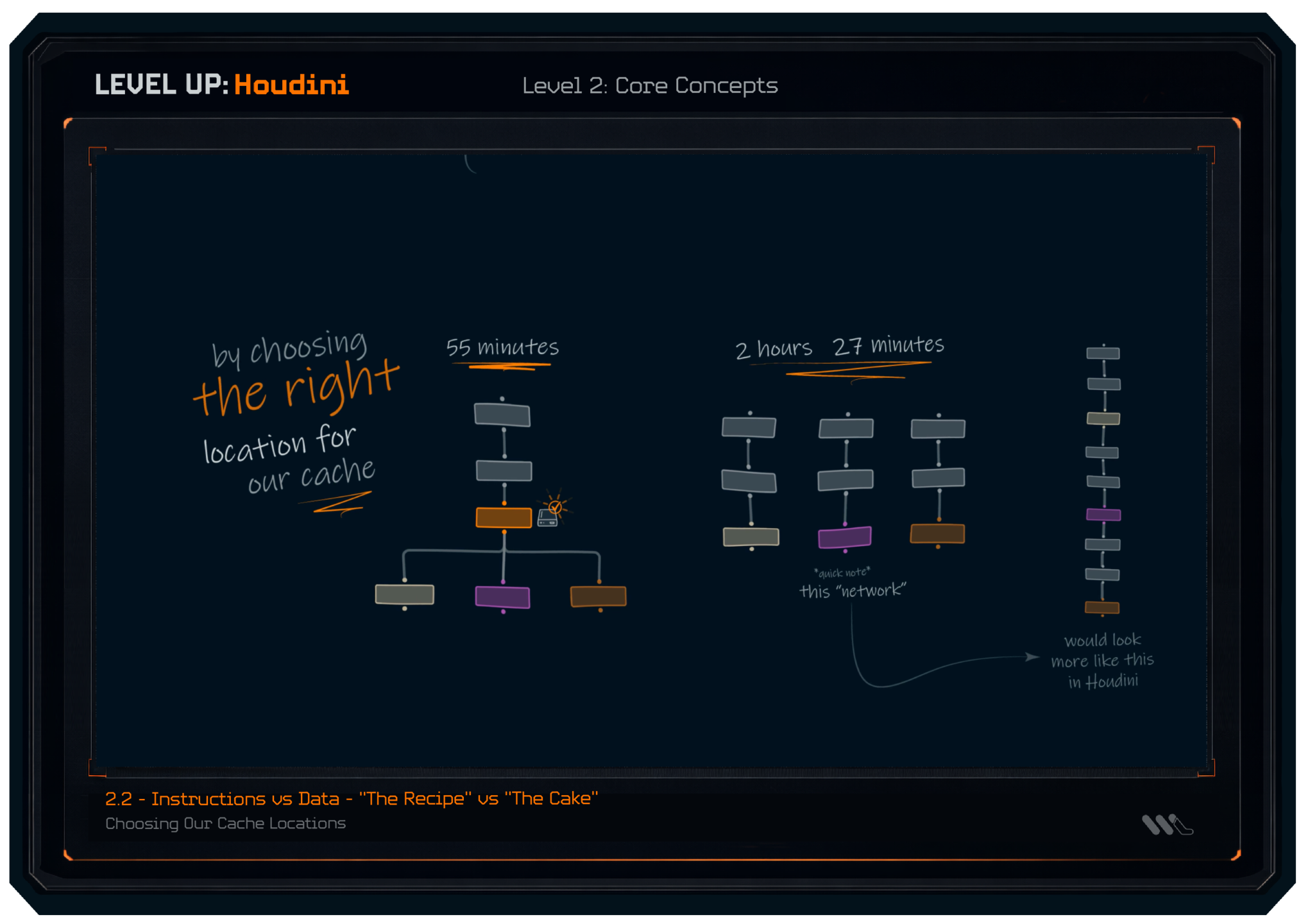 We continue where we left off in Level 1, and start building up our knowledge of the "language of Houdini". We understand what Houdini does at a core level, and what is happening as Houdini reads through our network and setups.