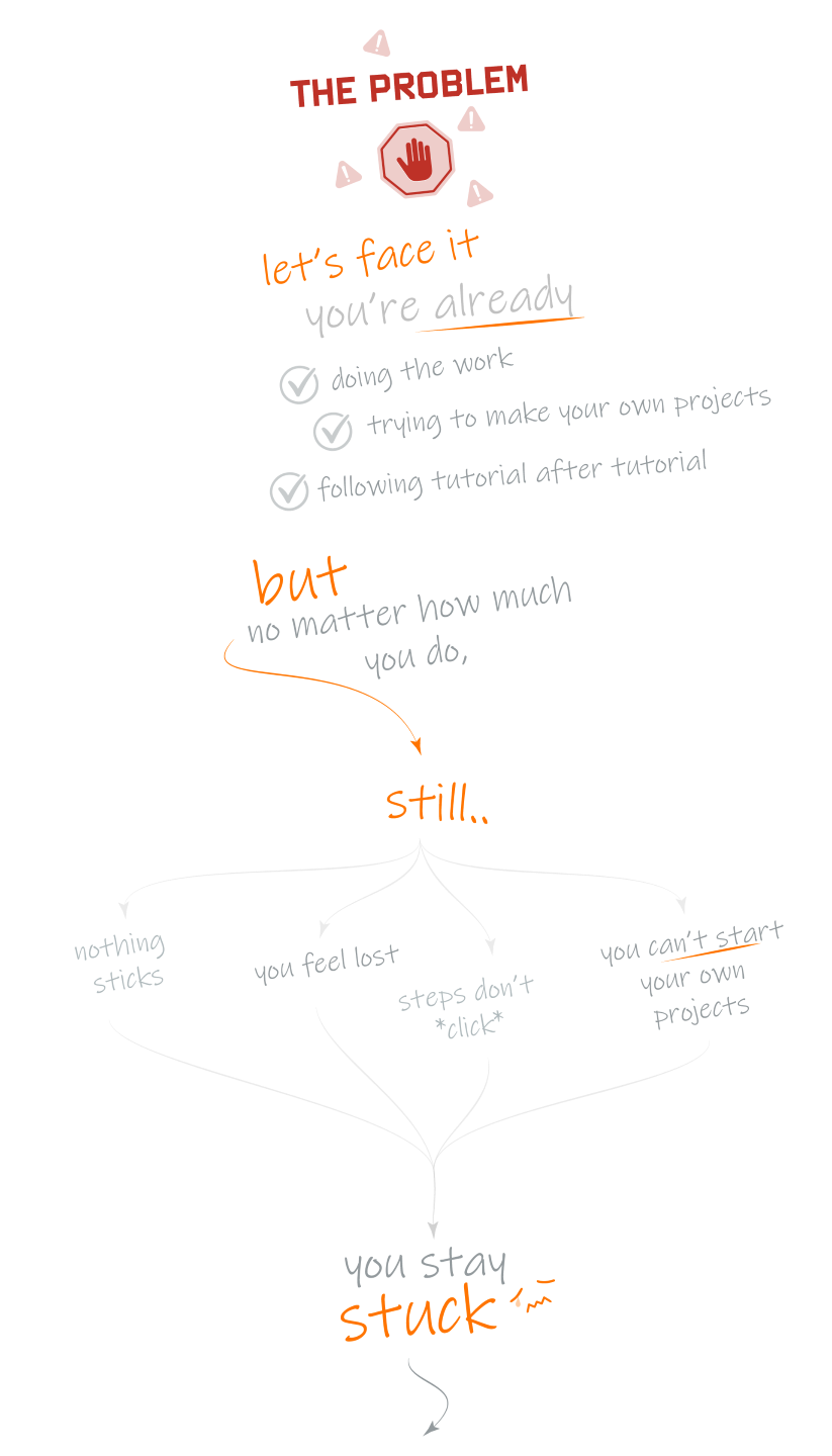 This final level, we team up to work on the projects you want to work on. I help you break down your own ideas and your own projects into how you can best approach them, and give you personalized guidance on how to best start and complete them.