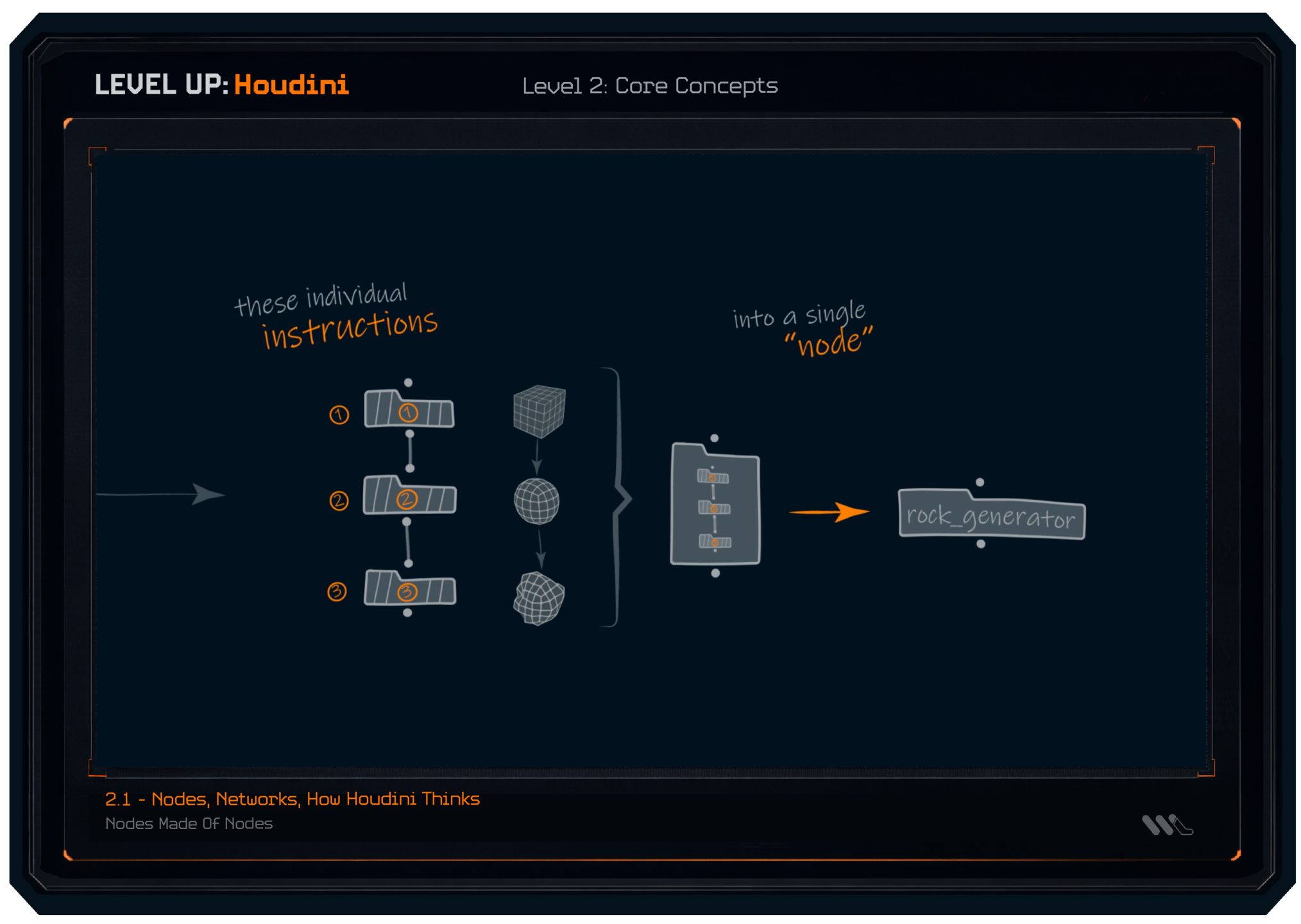 It’s a system that teaches you how to design and reason inside Houdini - so you can build projects intentionally and with full control.