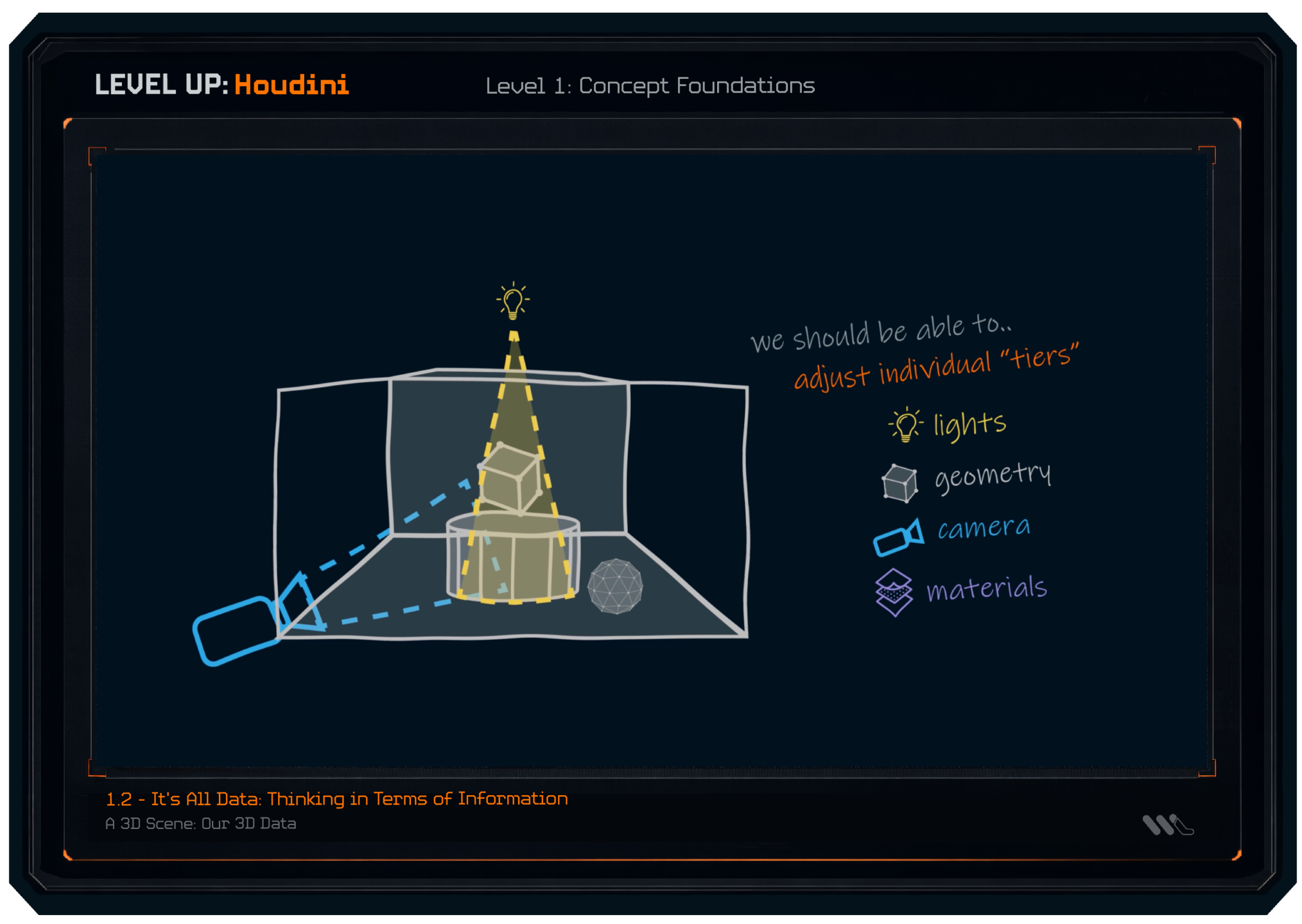 We start from the basics, introducing everything from the ground up. We cover the core foundations and data that make up the information Houdini operates on.